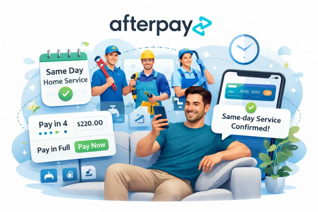 Afterpay splits the cost of your job into four equal fortnightly instalments with zero interest — and no application required. Select Afterpay when you book and you're done. It's best suited to jobs under $2,000 where you want flexibility without the paperwork.